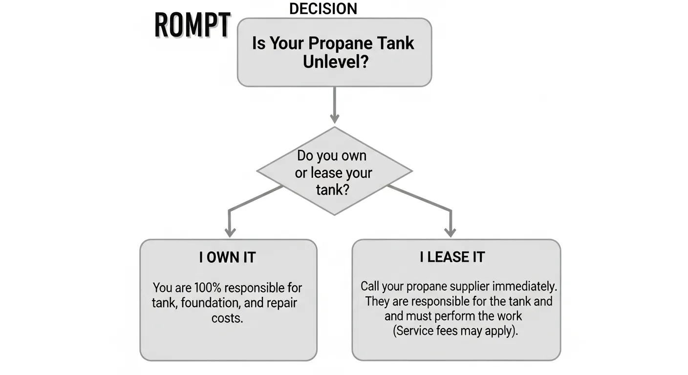 Your first call should always be to your propane supplier. Tell them, "I believe my tank is unlevel and creating a safety issue." This will get a technician out to assess it.