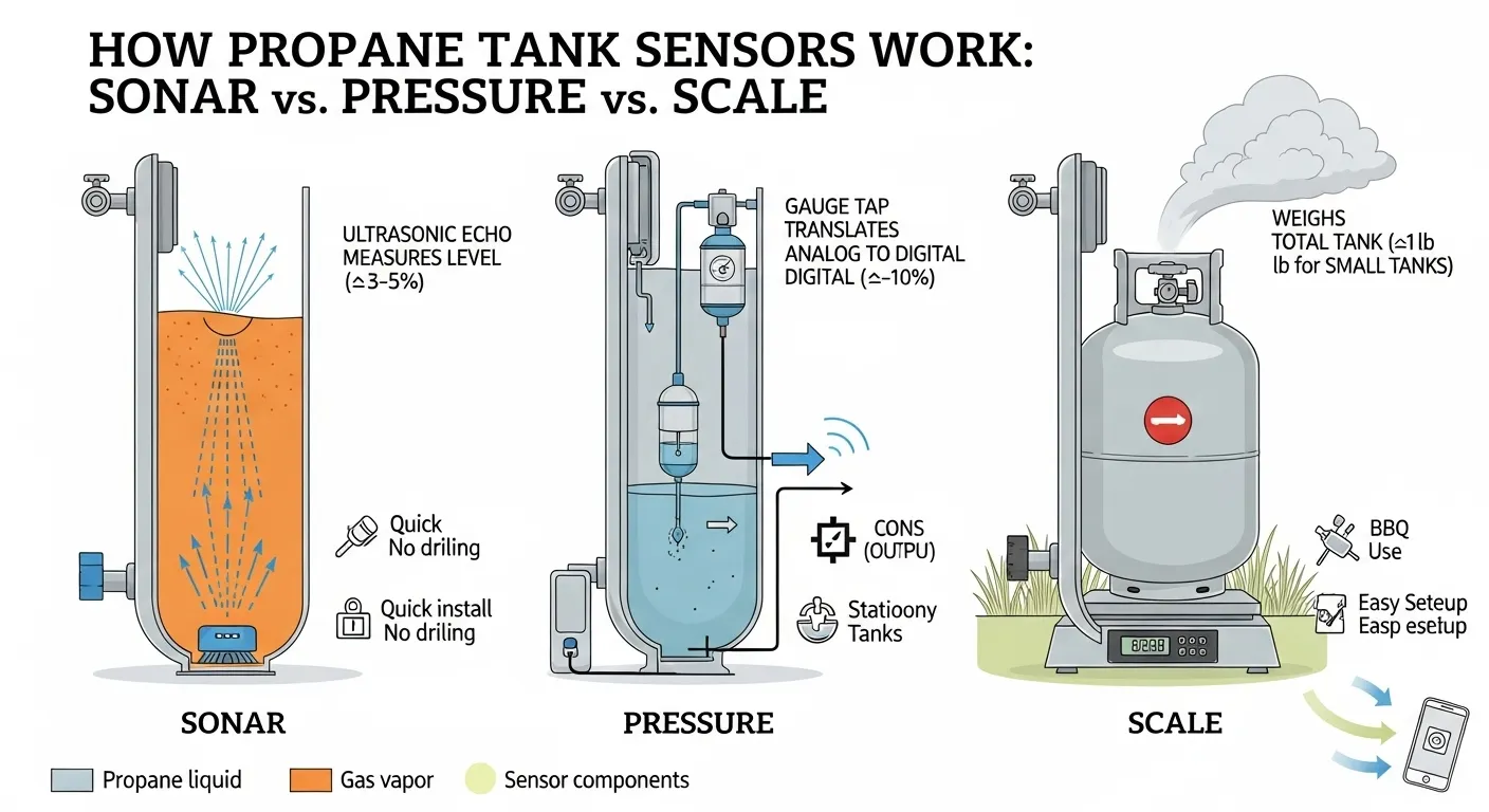Here’s where most people get tripped up. They think all smart propane monitors do the same thing — but the tech inside them couldn’t be more different. Understanding how these devices actually work helps you pick one that won’t drive you nuts six months later.