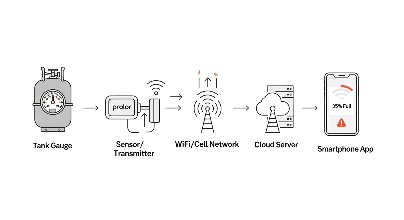 The reading isn't sent directly to your phone. It goes to a secure cloud server run by the monitor's company (like Generac or your propane supplier).